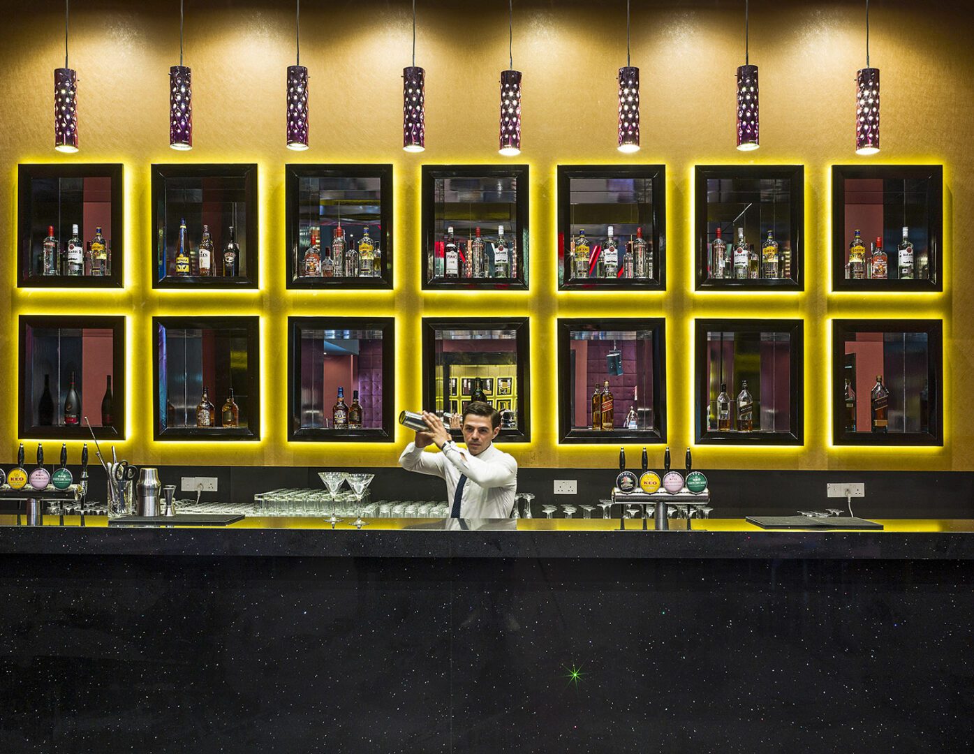 All the space, comfort and luxury associated with a classic Junior Suite that separates the plush bedroom from the elegantly furnished lounge – with a TV set in each area. The large bathroom features a tub and separate shower, while the private balcony invites you take in the view across the glittering..
