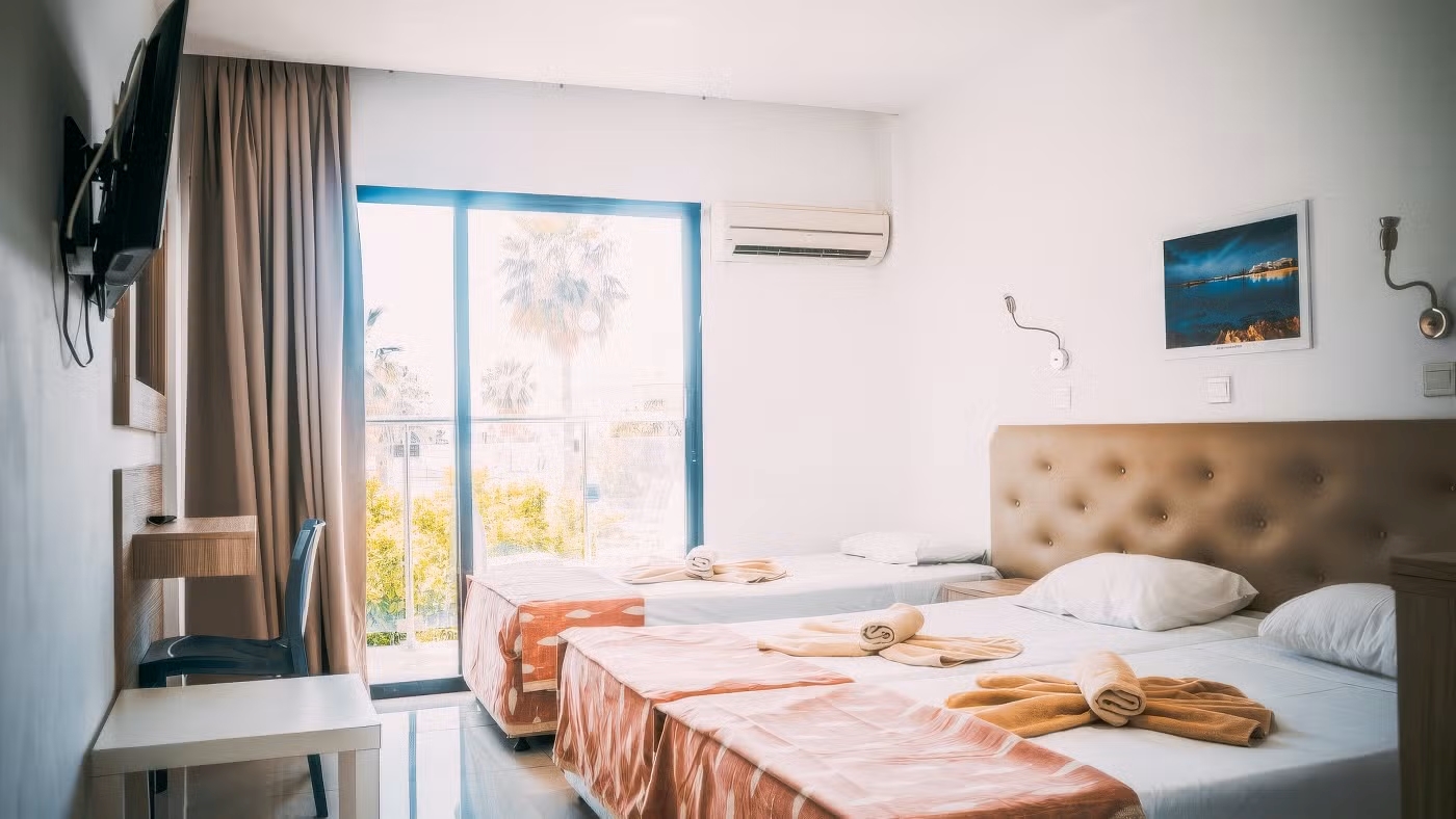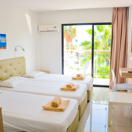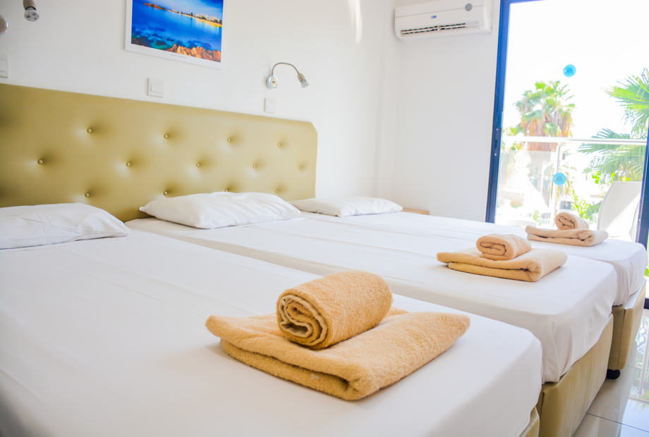 Pambos Napa Rocks is a 2 star hotel and provides good quality service- its value for money. The hotel is in the centre of Ayia Napa, next to the beautiful Nissi avenue and in the heart of town’s nightlife. Located 45km from the main Larnaka airport, just few minutes from the beautiful sandy beach and Limanaki Beach and the town square of Ayia Napa, the hotel is situated next to the monastery and next to all major entertainment and shopping venues. The biggest Luna park in the area is within a 2 min walk.