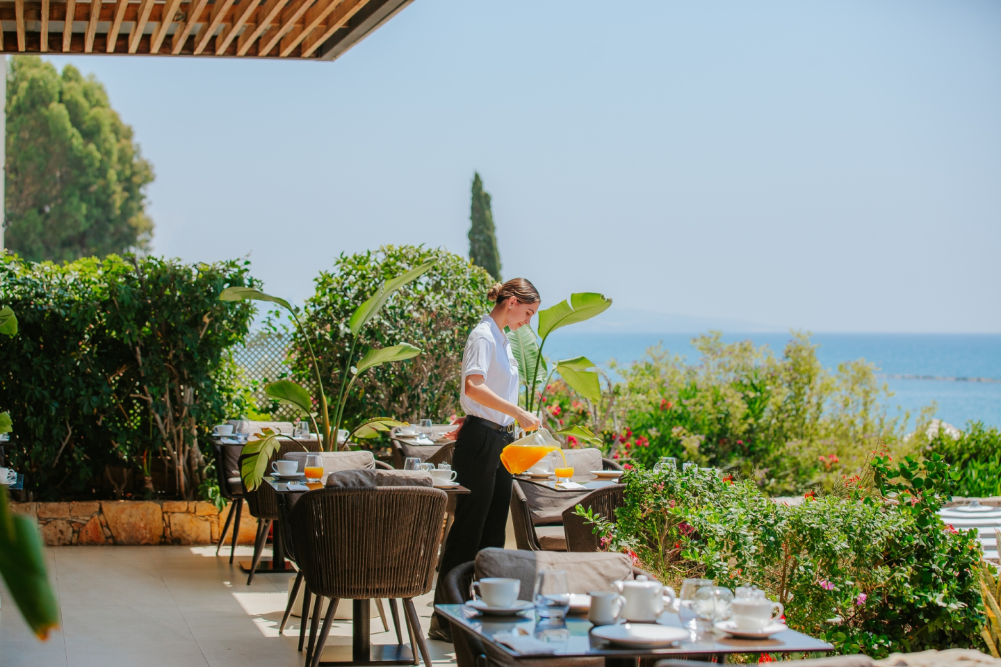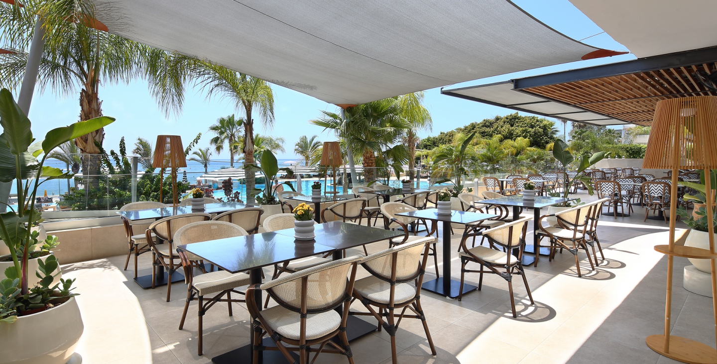Dining options include the Japanese a la carte restaurant Akakiko, the International Aura Dining and the Alati Greek Flavours restaurant. The seasonal Indigo swim-up bar serves daytime snacks, drinks and cocktails, while drinks can also be enjoyed at the indoor Luna lounge
