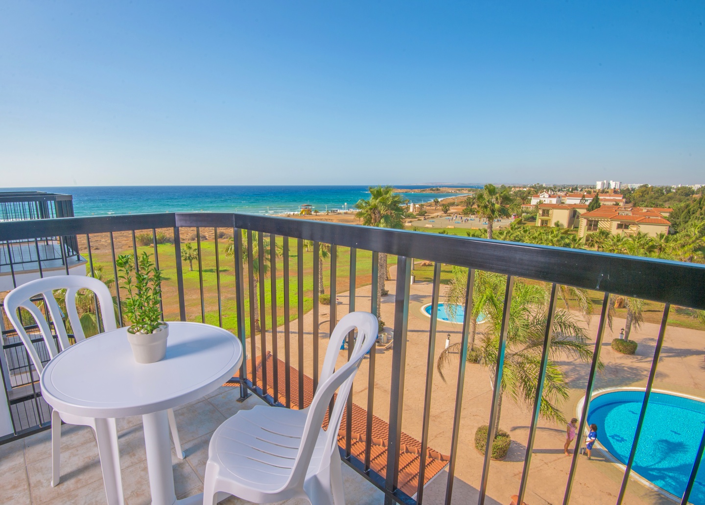 These rooms offer unobstructed views of the Mediterranean sea. All rooms have a fully furnished balcony, bathroom amenities, hairdryer, safe box, TV with satellite channels and air conditioning. Upon request and extra charge, a refrigerator and a minibar can be provided. Size 30 sqm..