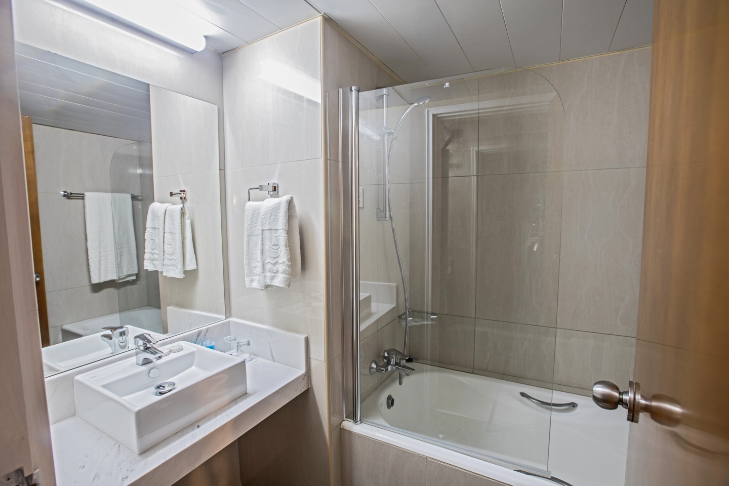 These rooms offer a partial view of the Mediterranean Sea. All rooms have a fully furnished balcony, bathroom amenities, hairdryer, safe box, TV with satellite channels and air conditioning. Upon request and extra charge, a refrigerator and a minibar can be provided. Size 30 sqm..