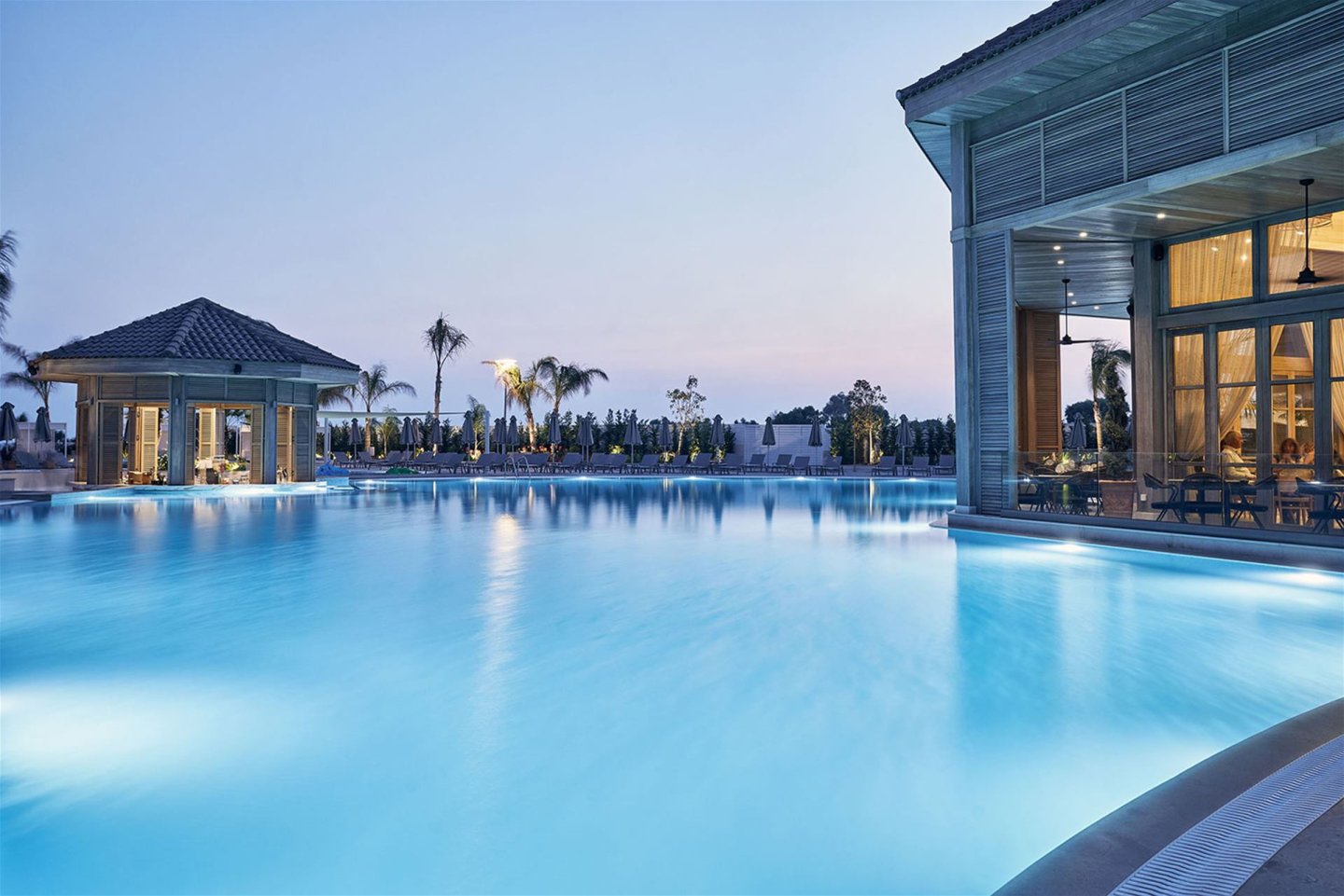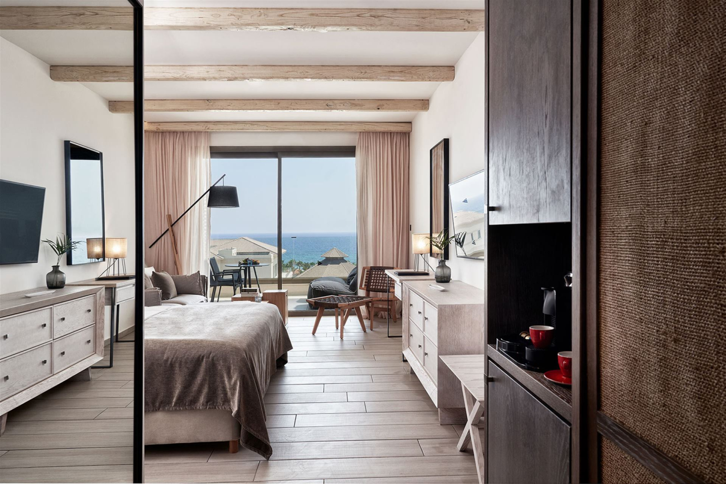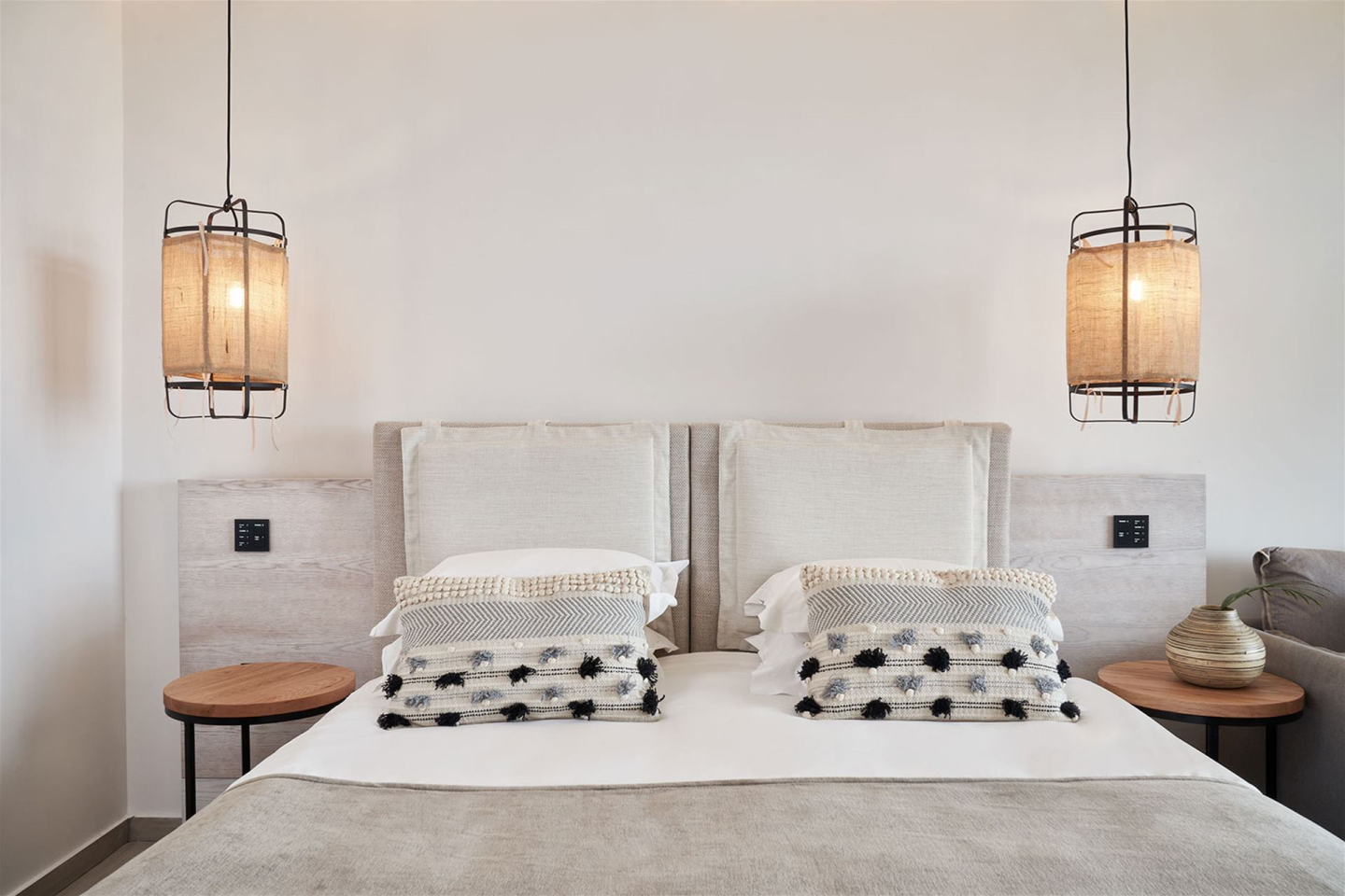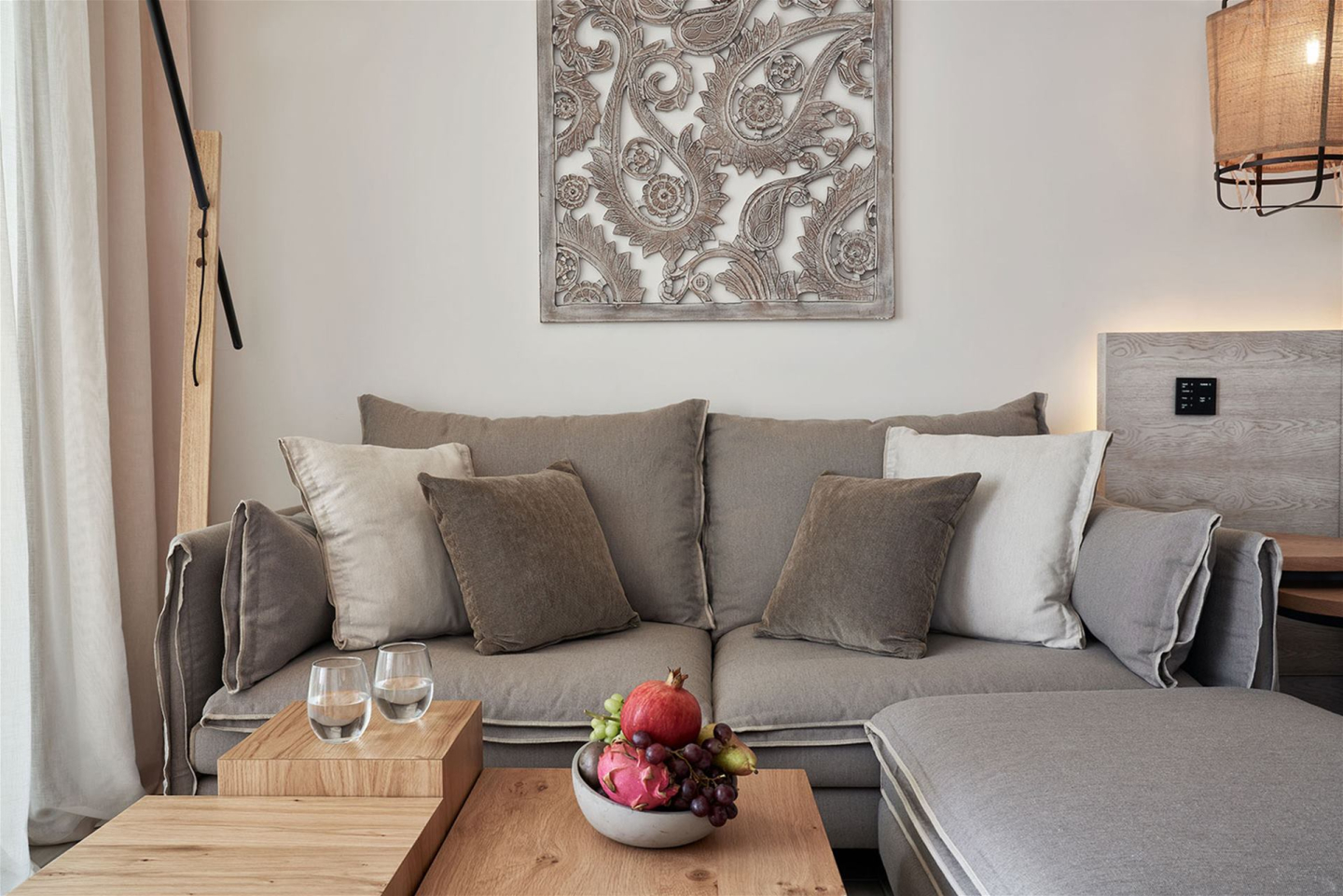 42-56 m2. Max Occupancy: 4 Persons. (min. adults: 2, max. children: 2). Similar to the One Bedroom rooms, these room types have the added benefit of direct access to the pool from your terrace. There's a separate bedroom with double bed and a separate living room area with a permanent corner sofa bad..