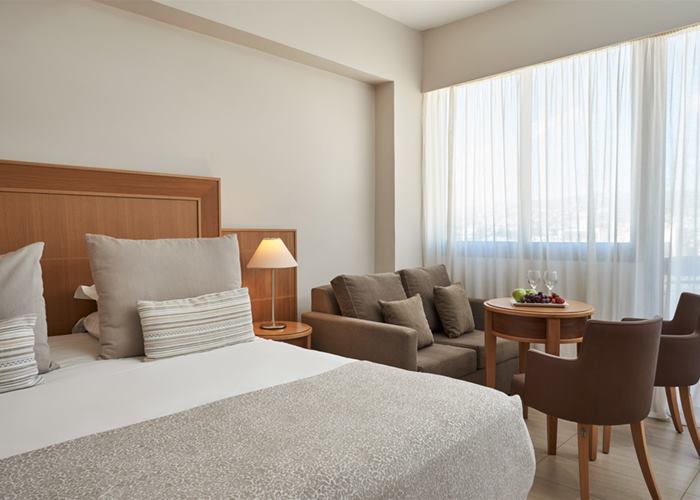 These elegant rooms are designed in contemporary style, with light wood furnishings, a queen bed (twin beds option available) for maximum comfort and a balcony. Sleeping up to 2 people the room is complete with mini fridge, plasma TV and air conditioning. Maximum 2 adults. In your private bathroom:. Free..