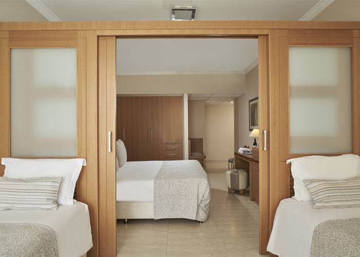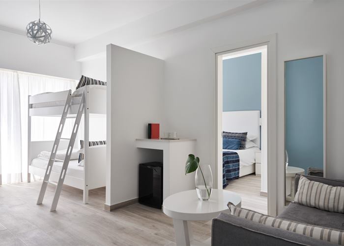 These stylish suites are great for families that enjoy some privacy. Sleeping up to 4 people the main bedroom has a double bed and the second has bunk beds for the kids. There’s a balcony to enjoy some fresh air plus you’ll find all the holiday essentials like mini fridge, LCD TV and air-conditioning..