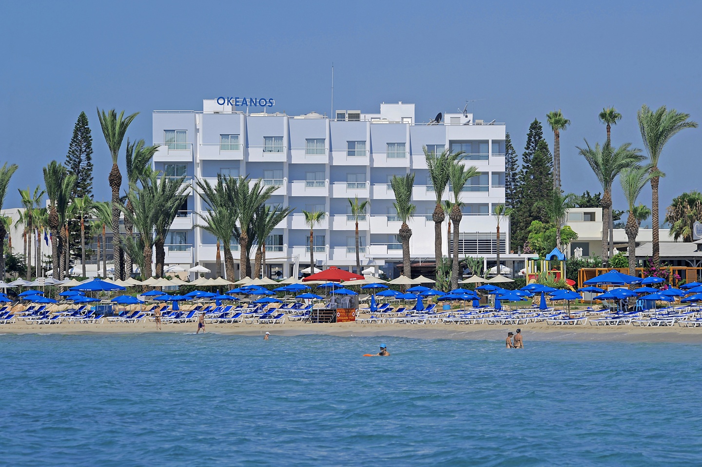 Situated on Ayia Napa's most magnificent beach, the 4-star Okeanos Beach Boutique Hotel offers a large outdoor swimming pool with sunbathing facilities. A gym and sauna are featured on site. Each with a balcony overlooking the sea and the fishing port, rooms are tastefully decorated. They are all air conditioned and heated, and equipped with a flat-screen, satellite TV, direct dial telephone and a fridge. Free toiletries and slippers are included.