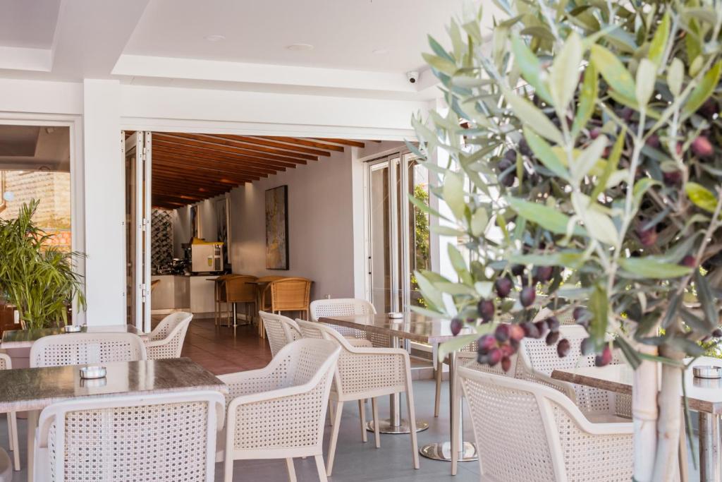 The hotel consist of newly build hotel rooms and self-catering rooms, all of them are tastefully furnished. The Self-catering rooms have Cooking facilities, a Private Balcony with Outdoor Furniture, Single beds, Dressing Table with Hairdryer, Shower ,Air conditioning , Refrigerator, Sofa bed, Tv, Safe box, Telephone and Wi-Fi. The Hotel rooms feature all the above room facilities, simply they have no cooking facilities but all the necessary equipment for a coffee or a tea.