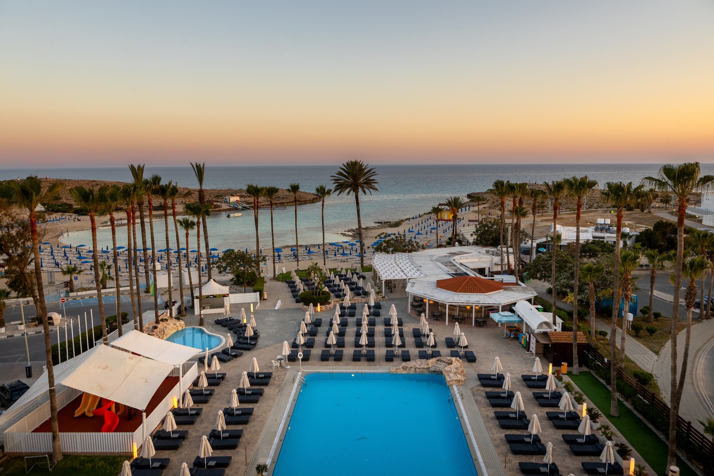 Welcome to the 4-star family-run Pavlo Napa Beach Hotel, ideally positioned facing the sea with direct access to a beautiful sandy bay in Ayia Napa, one of Europe's most popular resorts. Nestled along the crystal blue waters of the Mediterranean, our modern hotel prioritizes excellent service and personal attention. Ayia Napa centre, bustling with activities and attractions, is only a 15-minute walk away, ensuring convenience and entertainment for our guests. Walking distance to many restaurants, Coffee shops, shops and supermarkets.