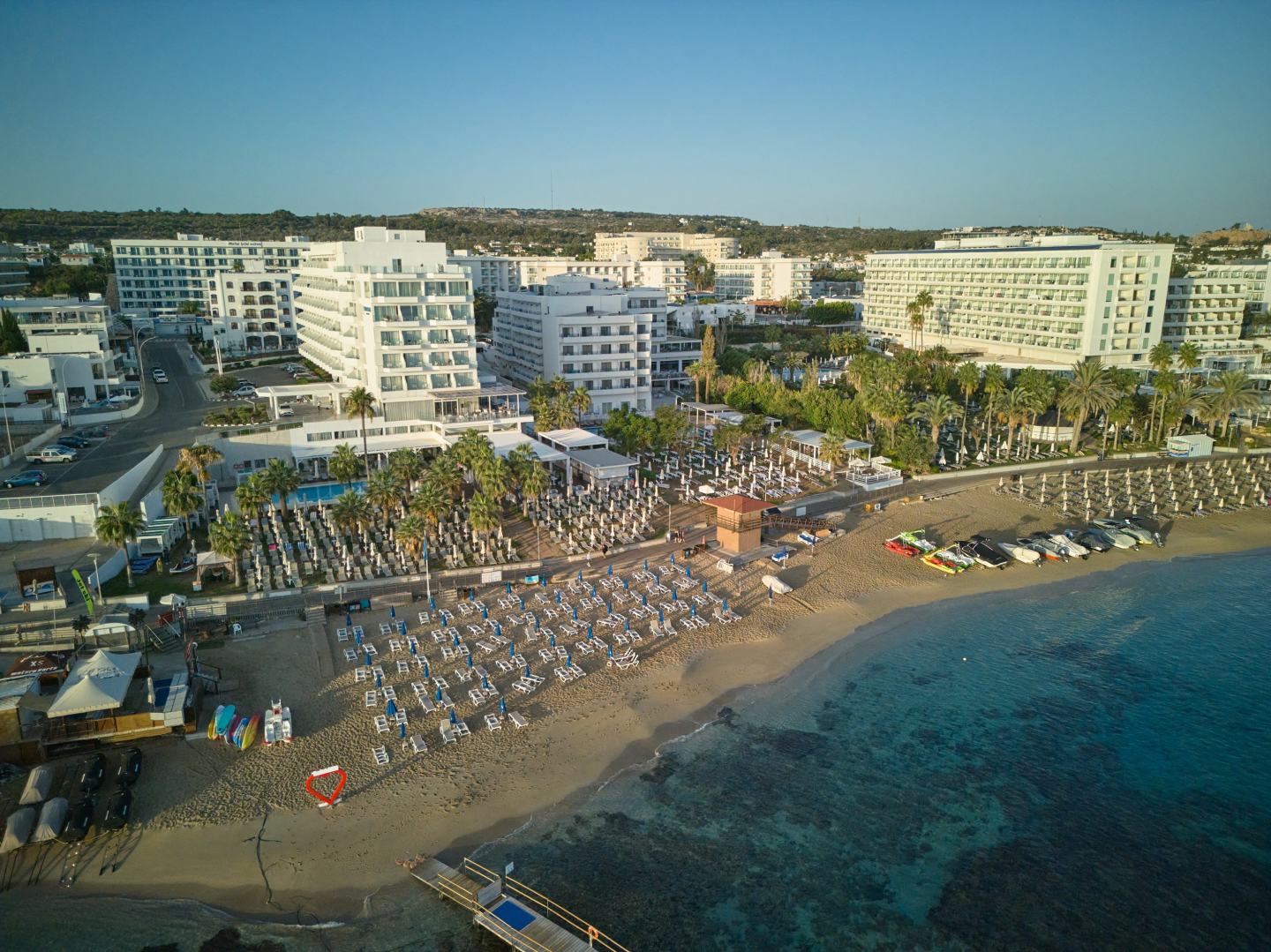 3-star hotel situated in Protaras, right on the beachfront, with direct access to a sandy beach. Very close to Fig Tree Bay, one of the island’s most famous beaches, walking distance to shops, restaurants, and nightlife in the town centre. The location is widely considered its biggest advantage.