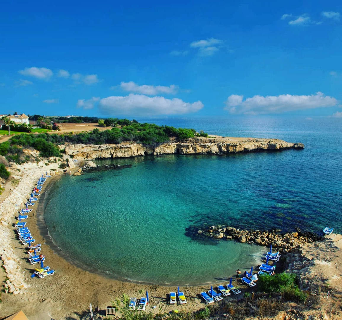 A family-friendly resort located in Protaras. It sits directly on a beautiful sandy cove known as Malama Bay with direct beach access and views over the Mediterranean Sea.