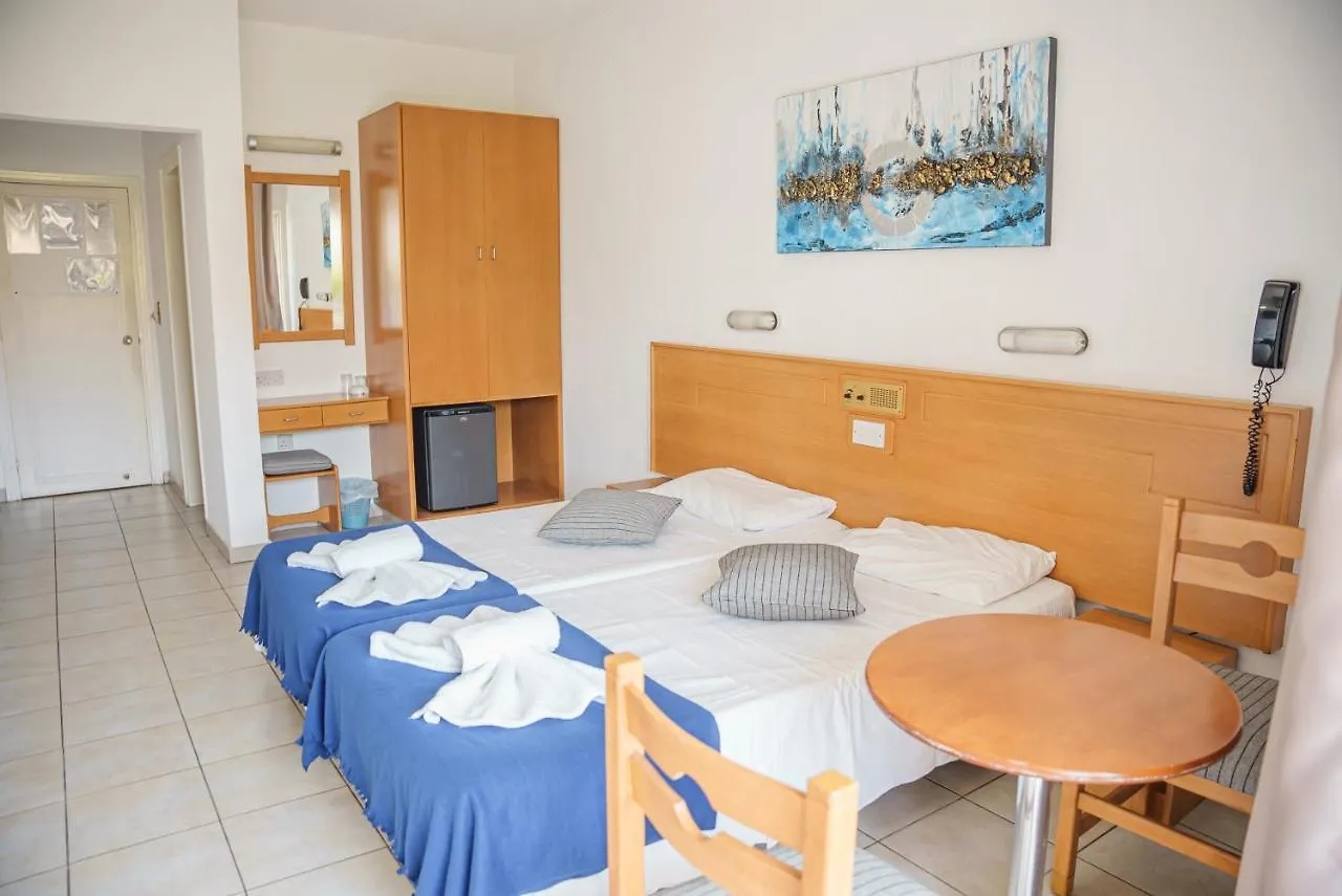 The hotel is located in the lively centre of Ayia Napa in 400 metres from the beach, 100 m from bars, discos, clubs, shops. To Larnaca international airport - 50 km.