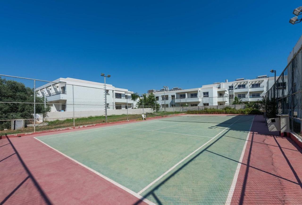 Studios / apartments with: kitchenette (fridge, stove, basic utensils), balcony (many with sea or pool views), air conditioning & WiFi. On-site: swimming pool + kids section, pool bar, small gym.
