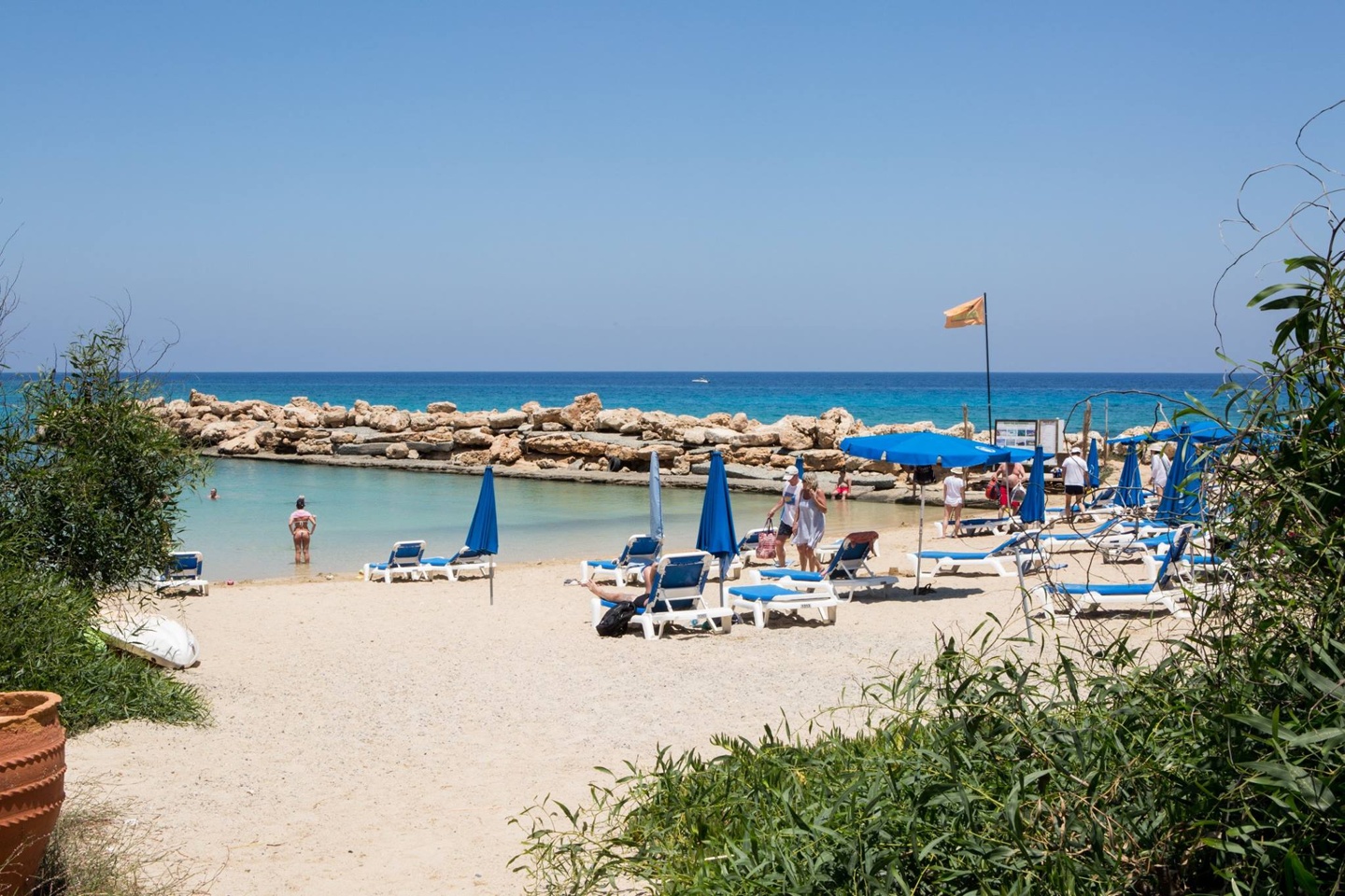 3-star, family-run hotel located in the Protaras. It’s known for its quiet setting on a small sandy cove and a more traditional, relaxed atmosphere compared to larger resorts. Safe, shallow waters — good for families and kids. Walking distance or short drive to nightlife and restaurants.
